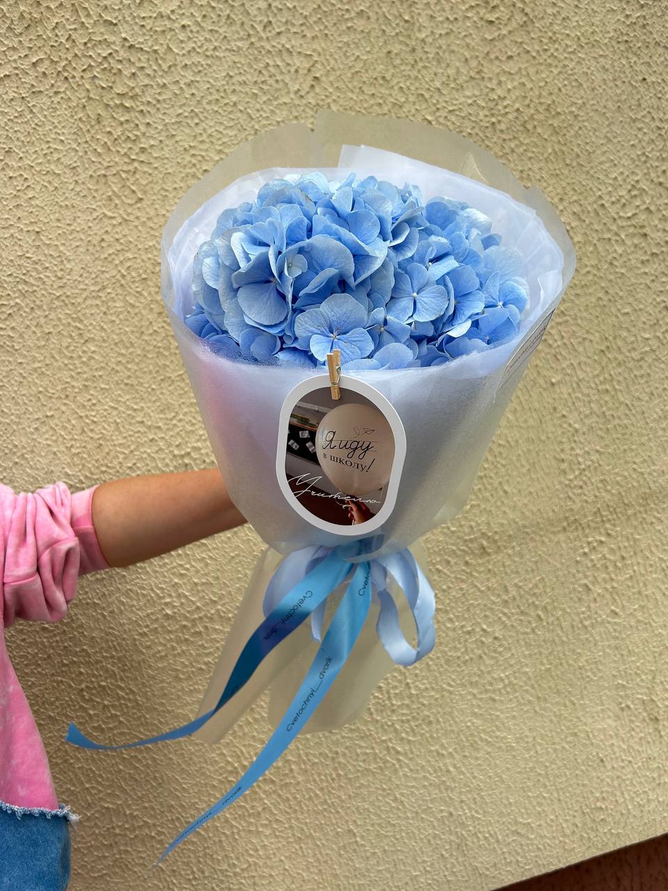 Состав: 1 гортензия, упаковка, лента