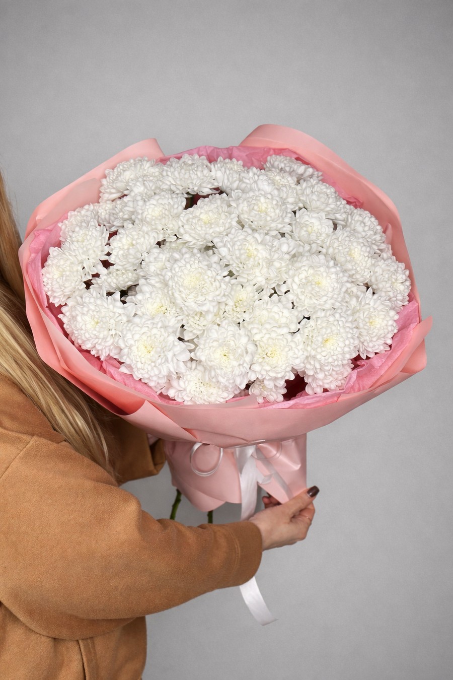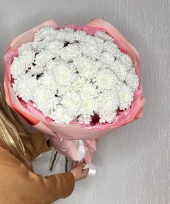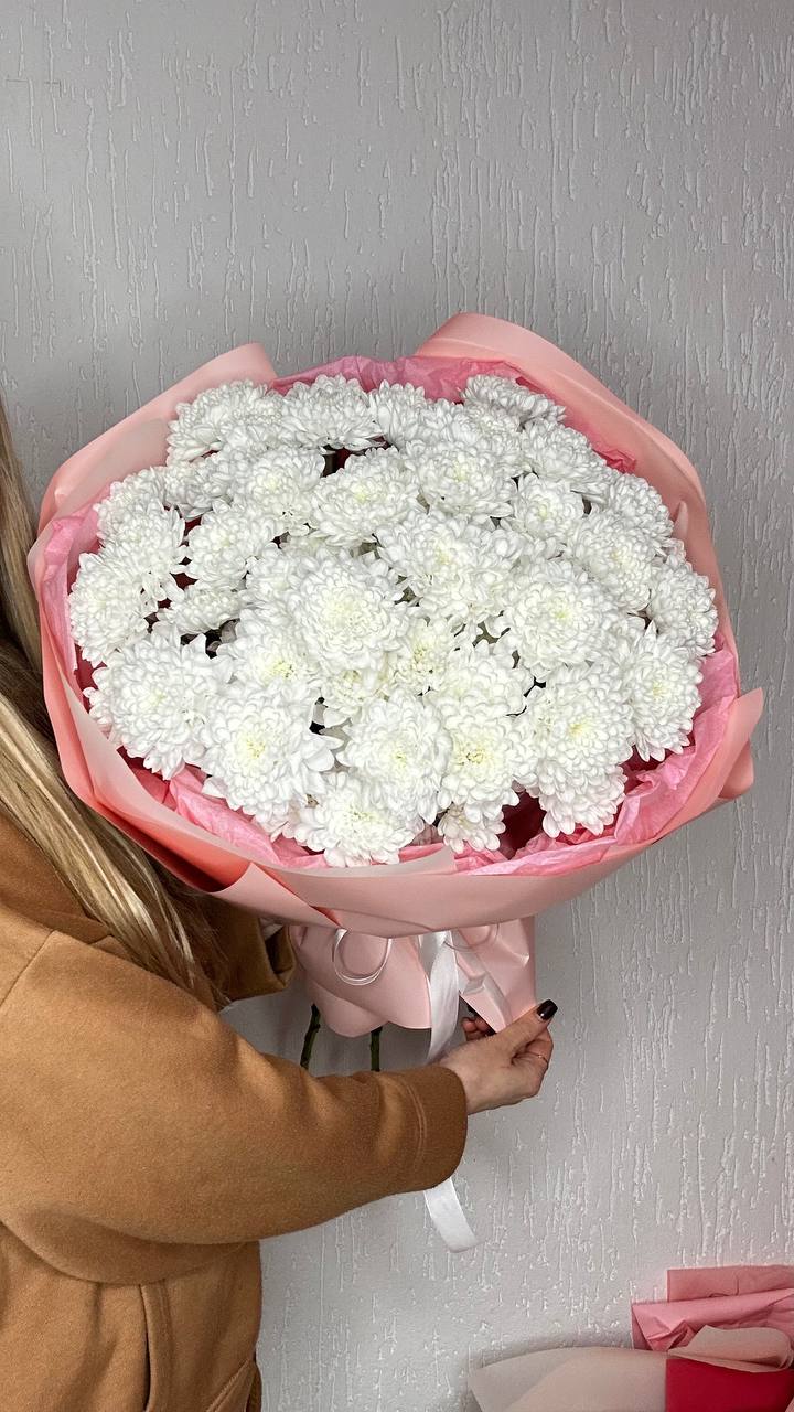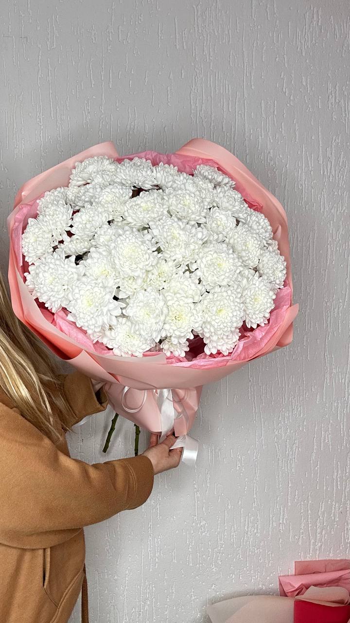 Состав: 11 облачных хризантем, упаковка, лента