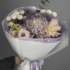 Состав: 1 Лилия, 1 хризантема, 1 кустовая Роза, 1 писташ, 2 хлопка, упаковка, лента